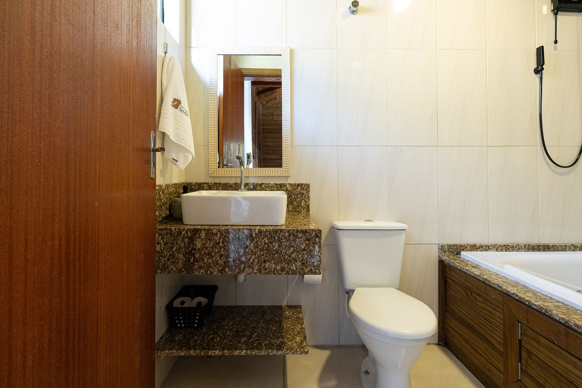 At Praia Alegre in Penha/SC, Eco Cabana accommodates a couple, in its own space, on the first floor with individual entrance and garage. There is a whirlpool bath for couples inside the Cabana. Quiet place, perfect for resting.