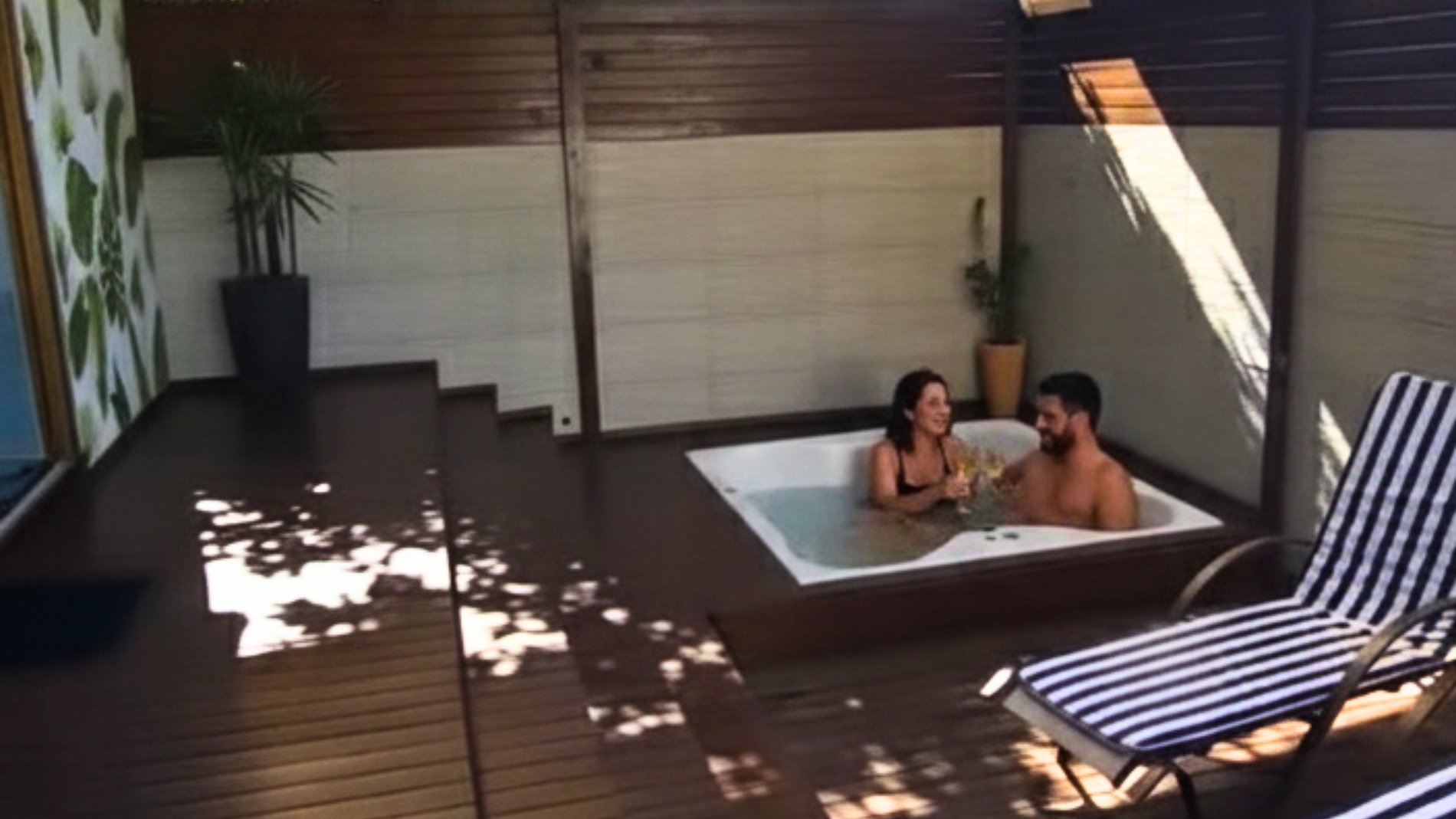 • Jacuzzi (spa) cubierto y climatizado en la terraza exterior con tumbonas y hamaca;