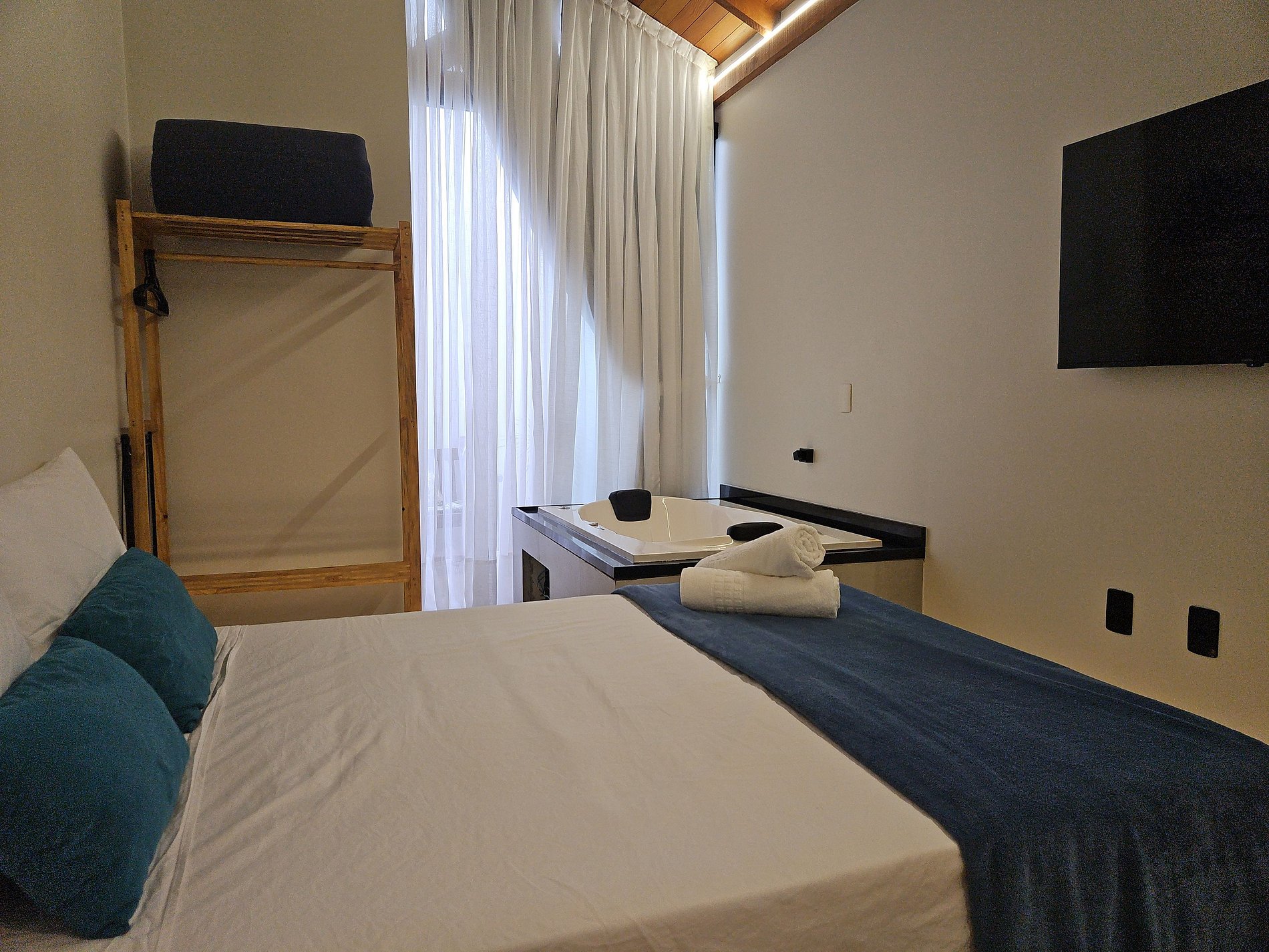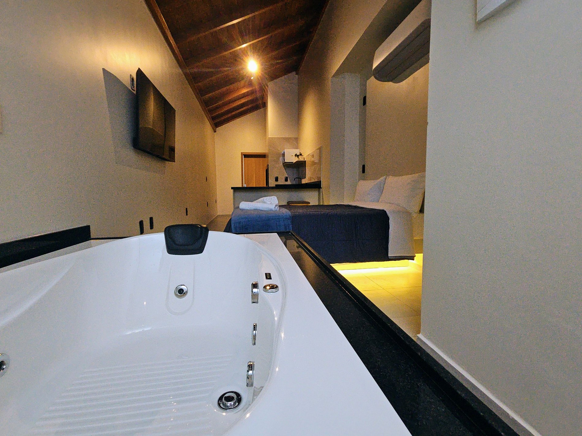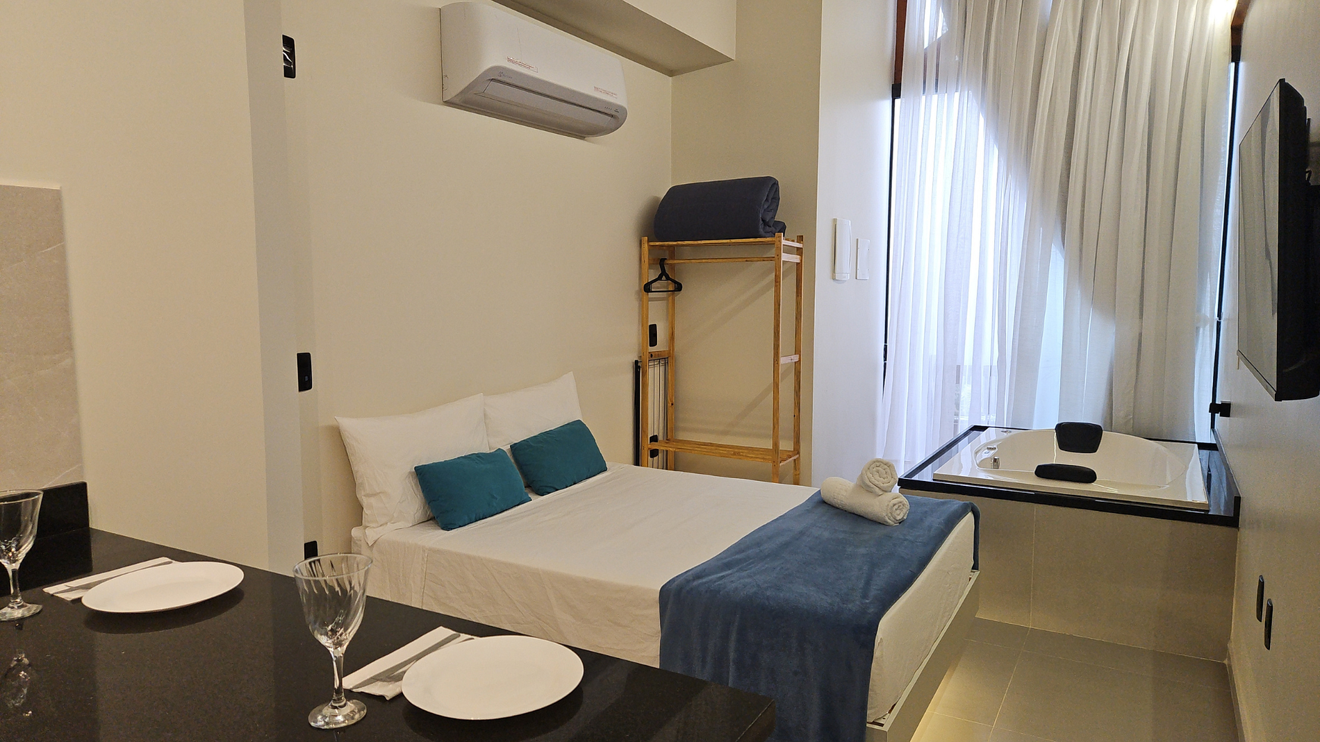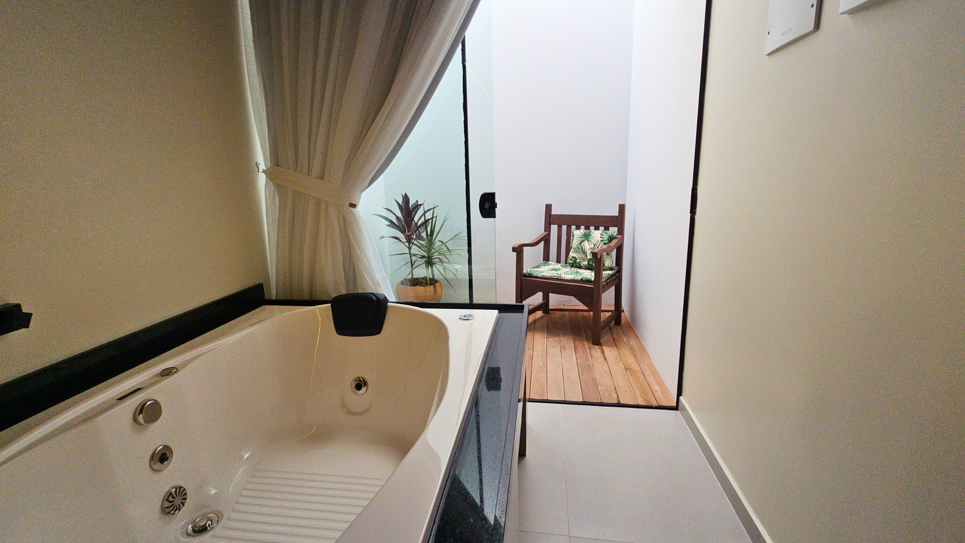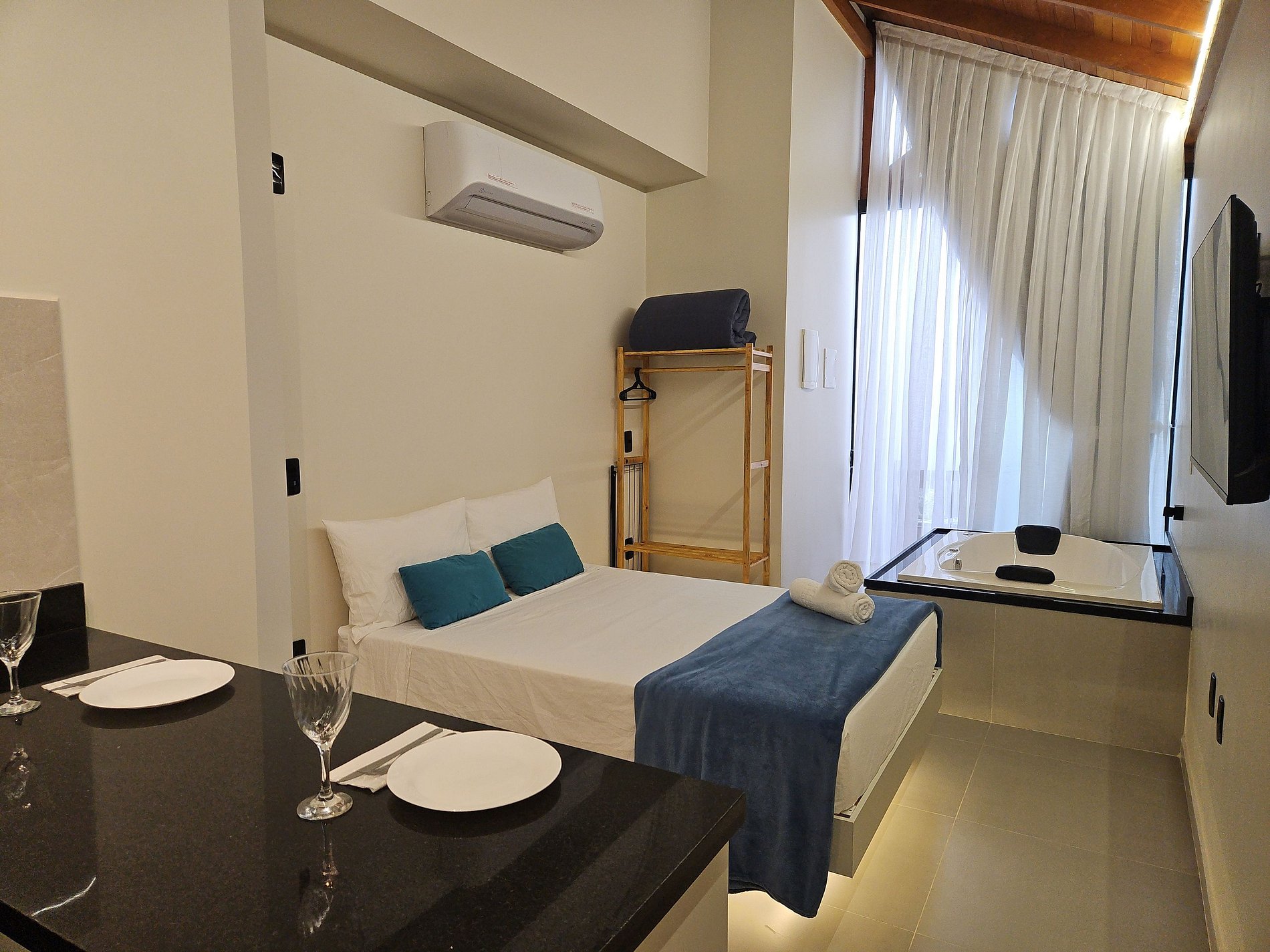Loft térreo com banheira hidromassagem casal, localização privilegiada, a Praia Alegre no fim da rua que dá para ir à pé, tem um pôr do sol lindo e mar calmo, com restaurantes e bares à beira mar