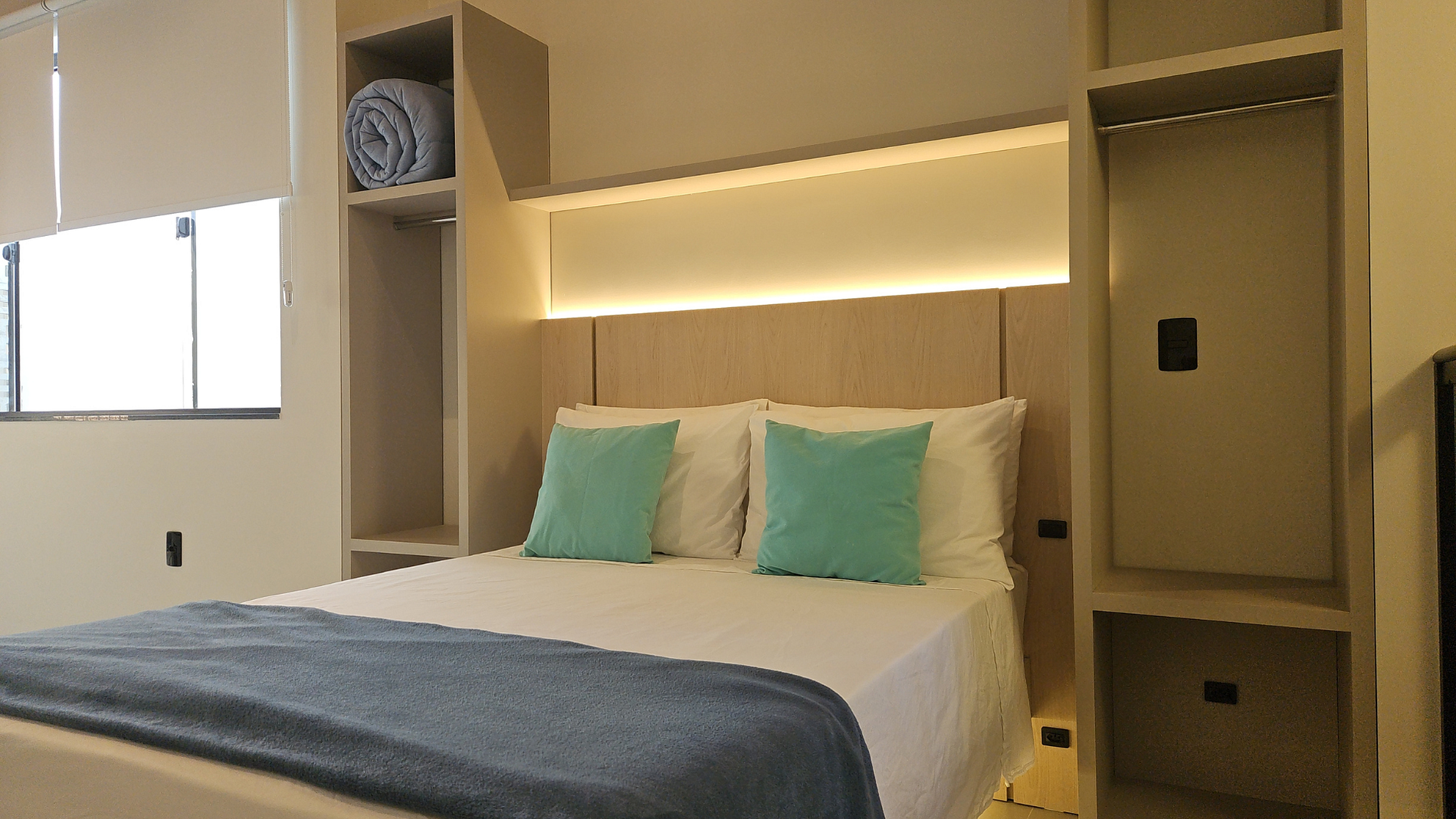 Tomada elétrica próxima à cama